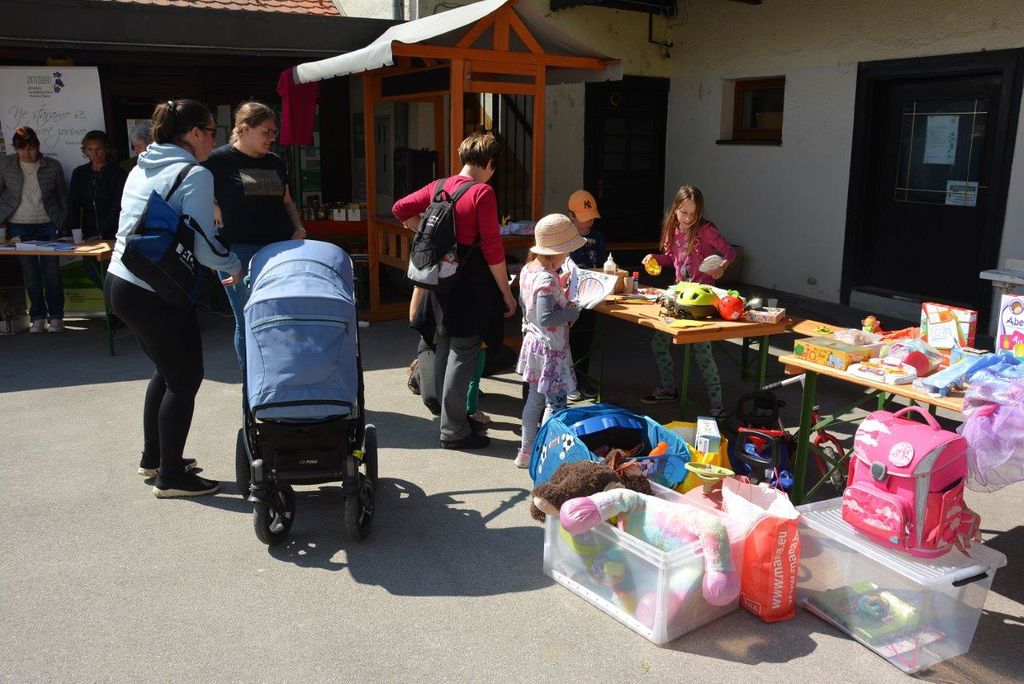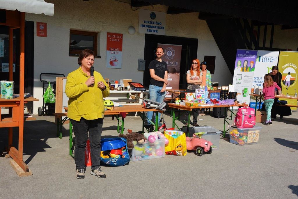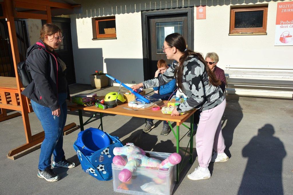Garažna razprodaja je bila v svojem sijaju. Ponujalo se je marsikaj zanimivega, da pa je tam potekalo kot je treba je sta poskrbela Marjan Reberšek in Neža Cestnik.
