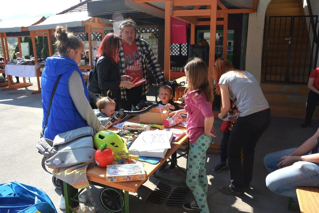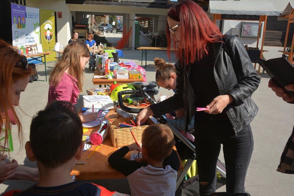 Poseben kotiček je bil namenjen najmlajšim – velikonočna delavnica je bila polna barv, smeha in veselja. Ob barvanju, izrezovanju in lepljenju so otroci uživali in ustvarjali prav po svoje. Za celotno otroško dogajanje, pa tudi za sejem igrač in zbiranje igrač za materinski dom, je srčno poskrbela Doris Polak Kuder - Kozarček hvaležnosti s svojo hčerkico, njen partner pa je bedel nad tehničnim delom, da je delovala in ni delala po svoje.