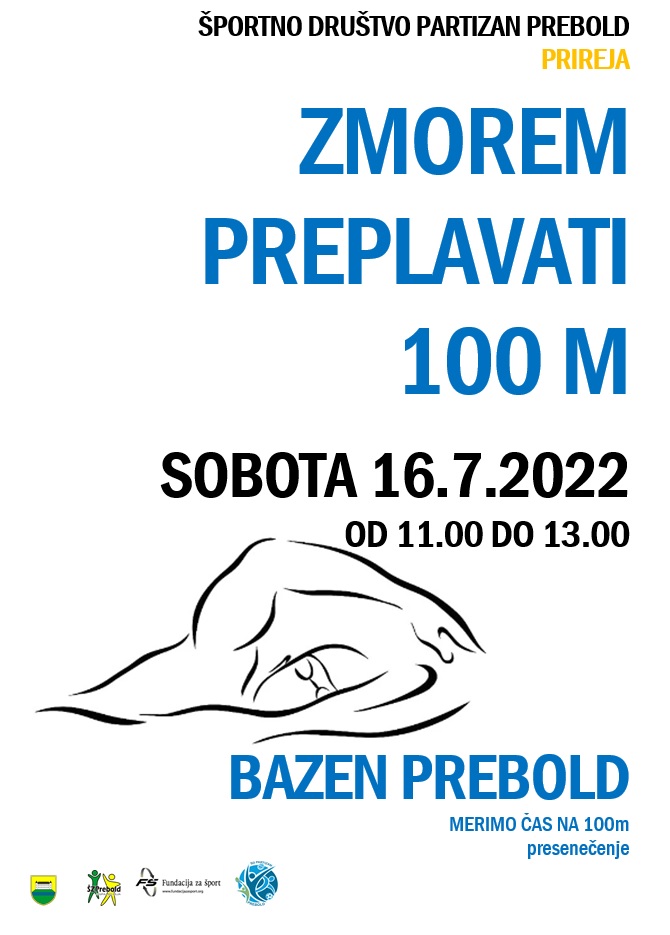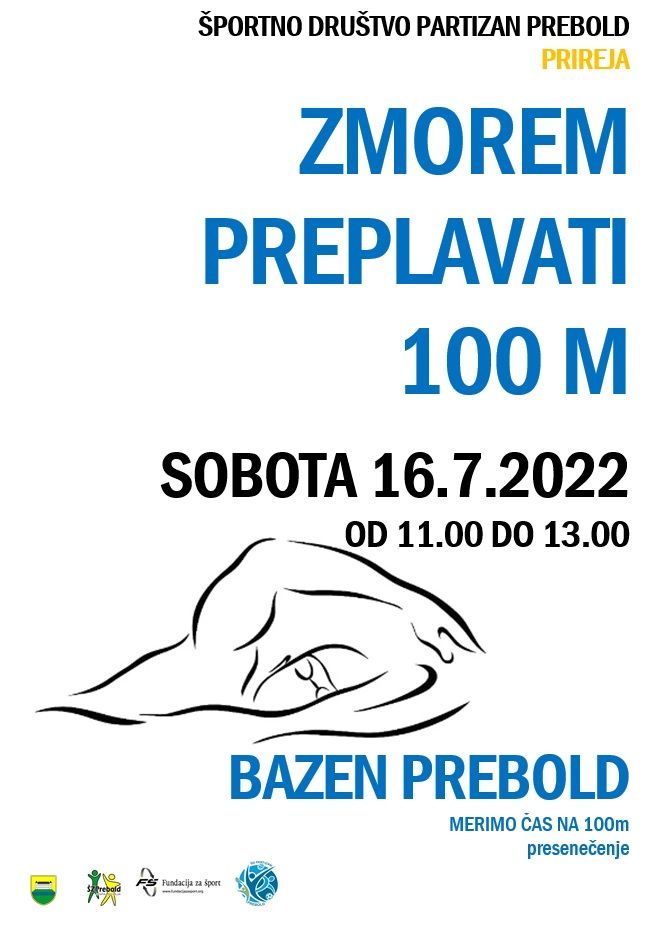 - od 11.00 do 13.00 Zmorem preplavati 100 m na Bazenu Prebold.