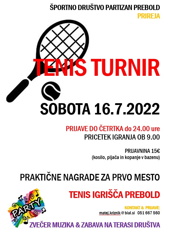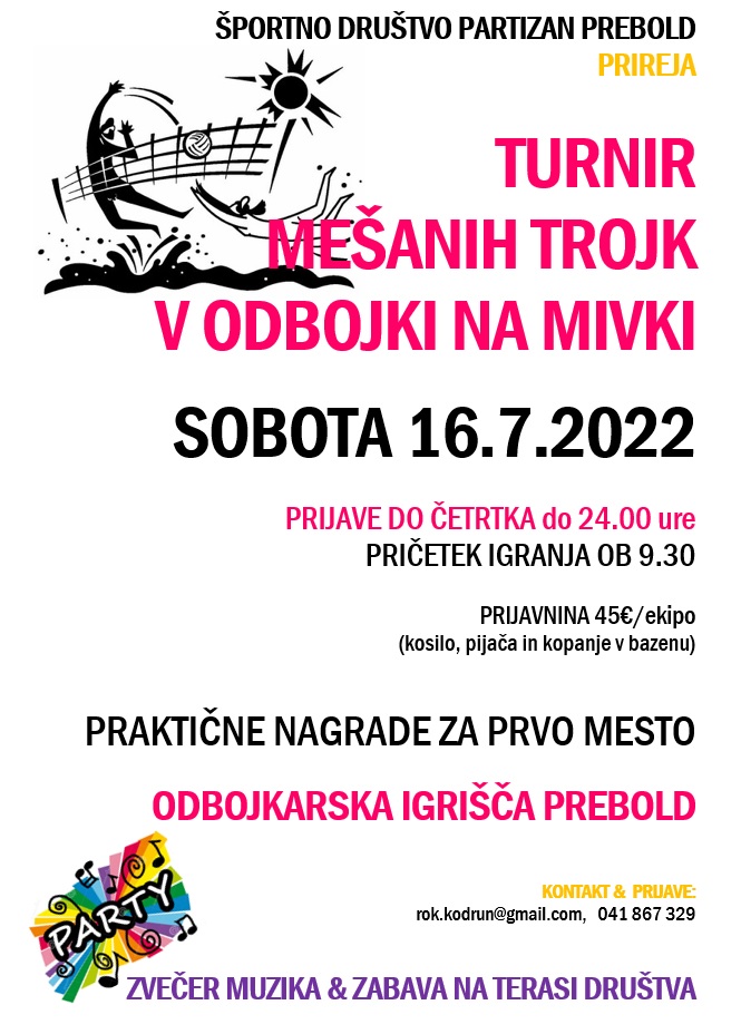 - od 9.00 dalje Tenis turnir in turnir mešanih trojk v odbojki na mivki