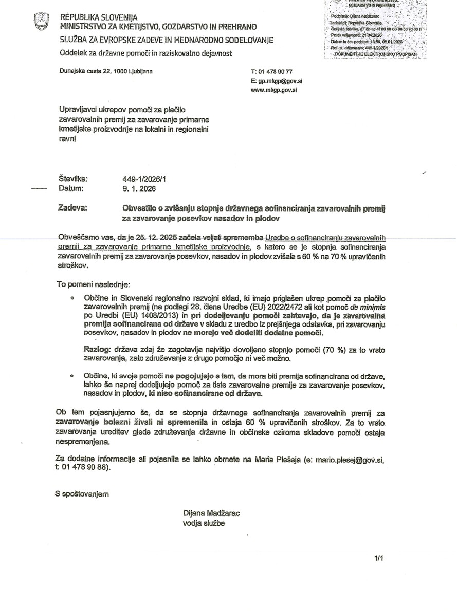 * UKREP 2: Pomoč pri plačilu zavarovalnih premij ( vlagatelji naj bodo pozorni na spremembo-Obvestilo ministrstva za kmetijstvo glede sofinanciranja zavarovanih premij posevkov, nasadov in plodov)