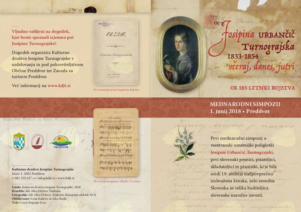 - ddr. Mira Delavec Touhami: Josipina Urbančič Turnograjska - edinstvena glasnica slovenske nacionalne identitete,