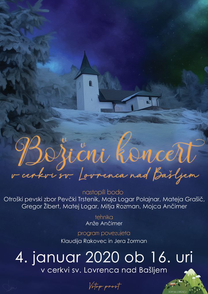 V soboto, 4.1.2020, ob 16. uri vas vabimo na Božični koncert, ki bo tokrat prvič v prelepi cerkvici sv. Lovrenca nad Bašljem.
