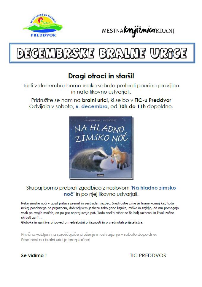 V soboto, 6.12.2014 ob 10.00, bomo prebrali pravljico z naslovom: Na hladno zimsko noč.