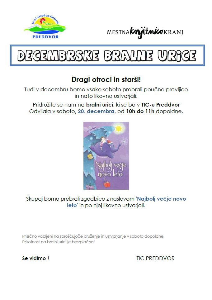 V soboto, 20.12.2014 ob 10.00, bomo prebrali pravljico z naslovom: Najbolj večje novo leto.