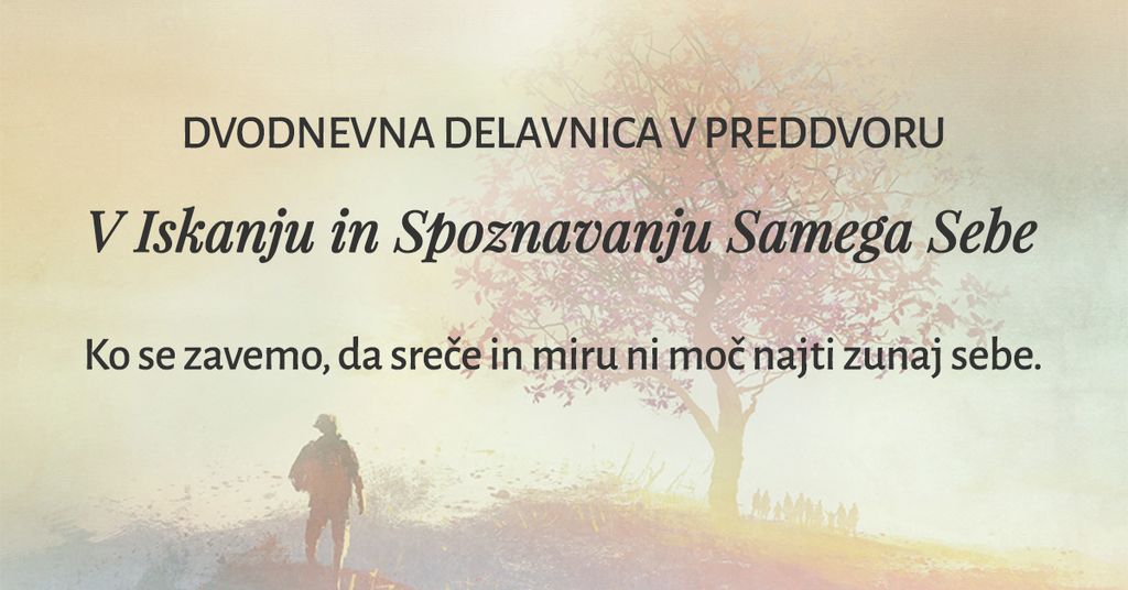 V Domu krajanov Preddvor bo 17. in 24. aprila, obakrat od 17.30 do 19.30 potekala delavnica V Iskanju in Spoznavanju Samega Sebe, ki jo bo vodil Mitja Žibert, osebni svetovalec na področju samospoznavanja in samopomoči. Gre za delavnico v dveh delih.