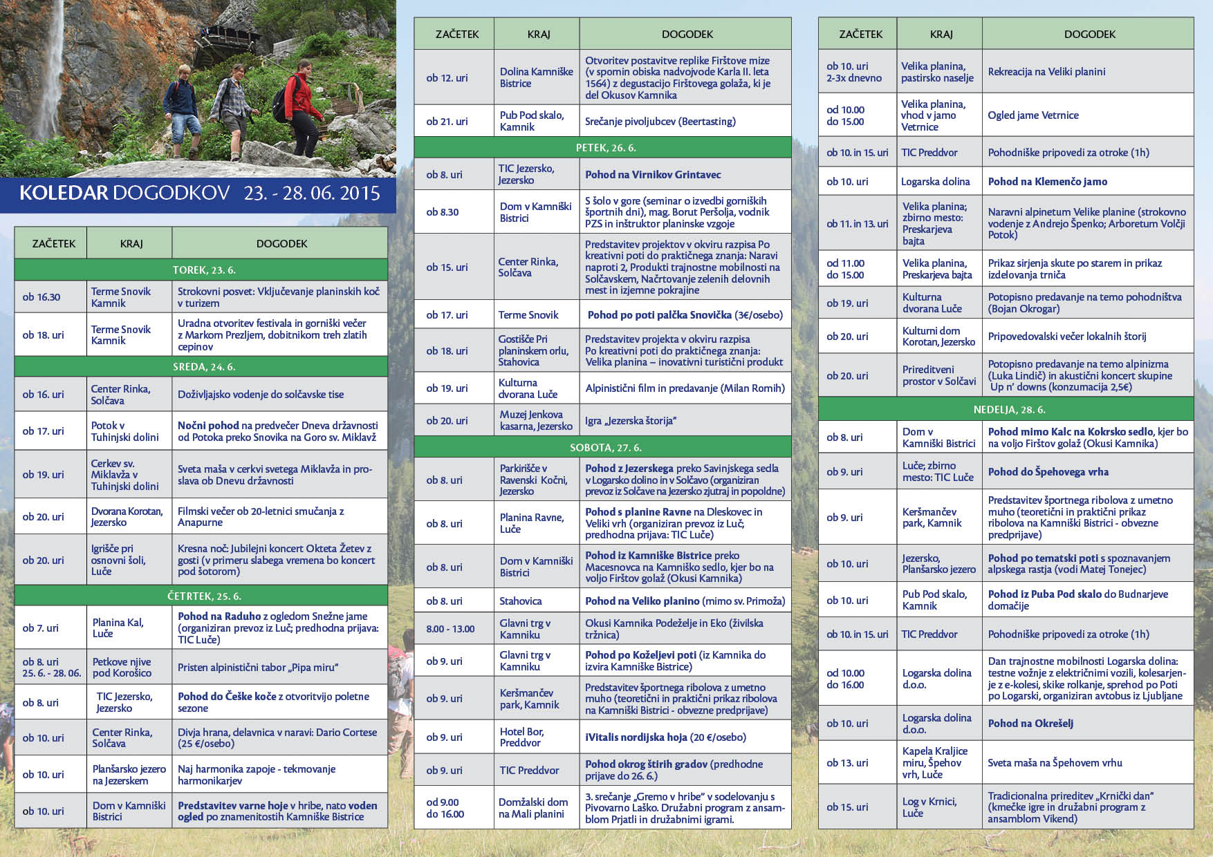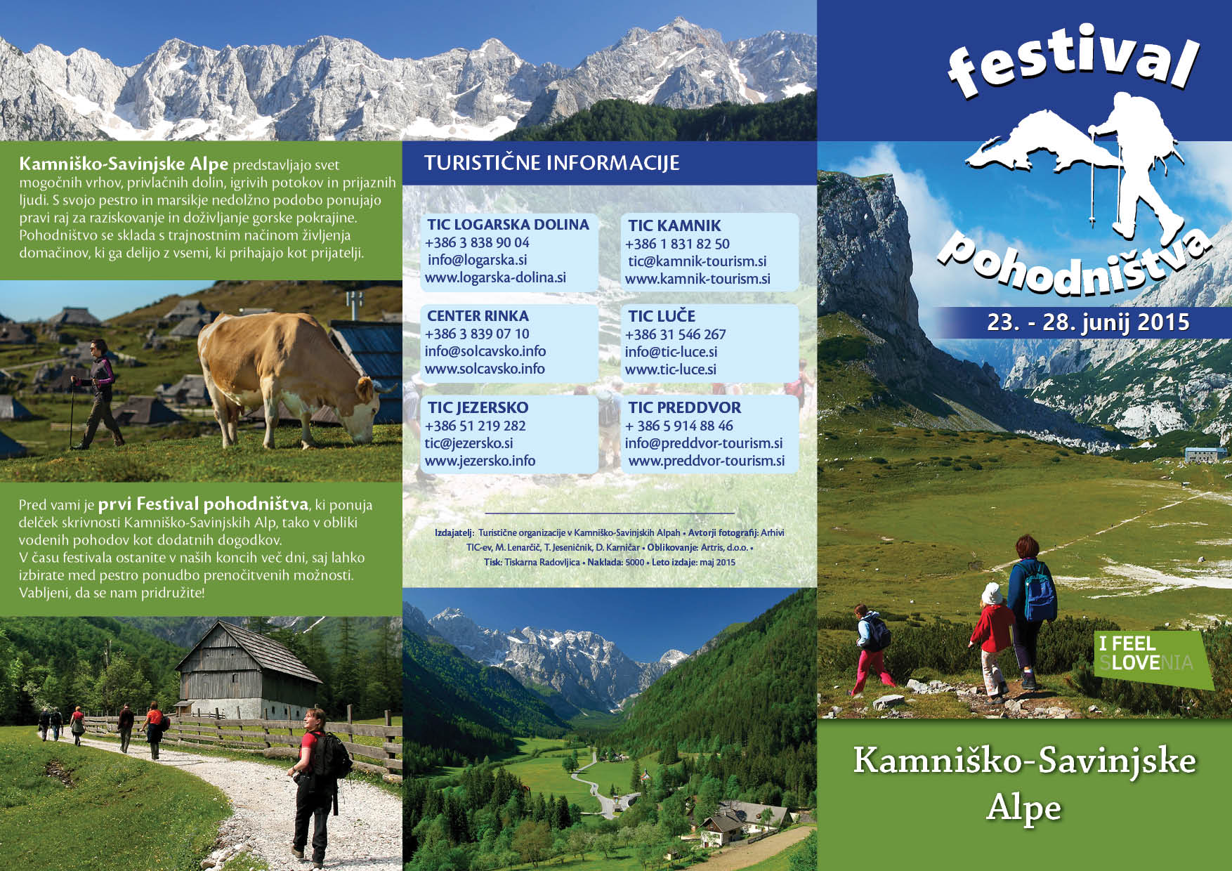 Turistične organizacije v občinah Jezersko, Kamnik, Luče, Preddvor in Solčava organizirajo prvi Festival pohodništva v Kamniško-Savinjskih Alpah, ki bo potekal od 23. do 28. junija 2015.