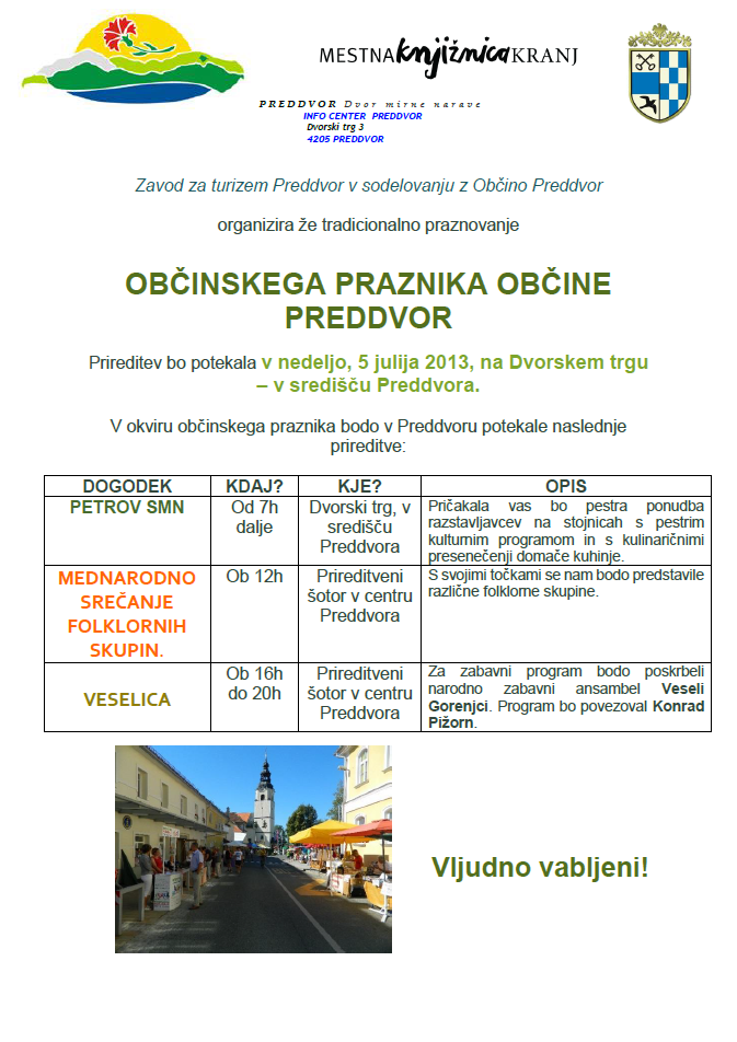 Zavod za turizem Preddvor v sodelovanju z Občino Preddvor organizira že tradicionalno praznovanje