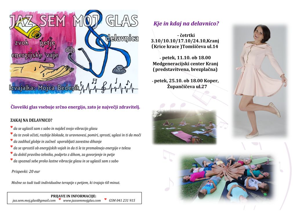 Vse to potrebujejo tudi naši otroci, zato vas vabim, da pripeljete svoje OTROKE na delavnico JAZ SEM MOJ GLAS za otroke.
