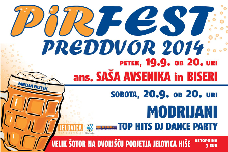 Agencija Media butik pripravlja tradicionalni že peti PIRFEST - PREDDVOR 2014, ki bo 19. in 20. septembra pod velikim šotorom na dvorišču Jelovice v Preddvoru. V petek bodo igrali ans. Saša Avsenika in Biseri, v soboto pa bodo obiskovalce zabavali Modrijani. Vstopnina znaša 3 eure.