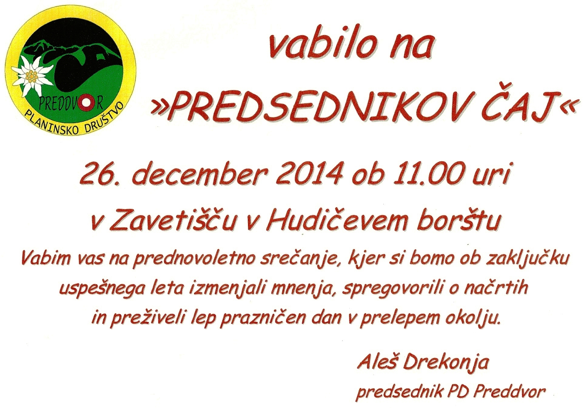 Vabimo vas na prednovoletno srečanje v zavetišče v Hudičevem borštu, kjer si bomo ob zaključku uspešnega leta izmenjali mnenja, spregovorili o načrtih in preživeli lep praznični dan v prelepem okolju.