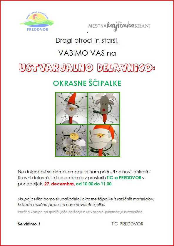 Skupaj bomo skupaj izdelali okrasne ščipalke iz različnih materialov, ki bodo odlično popestrili naše novoletne jelke.