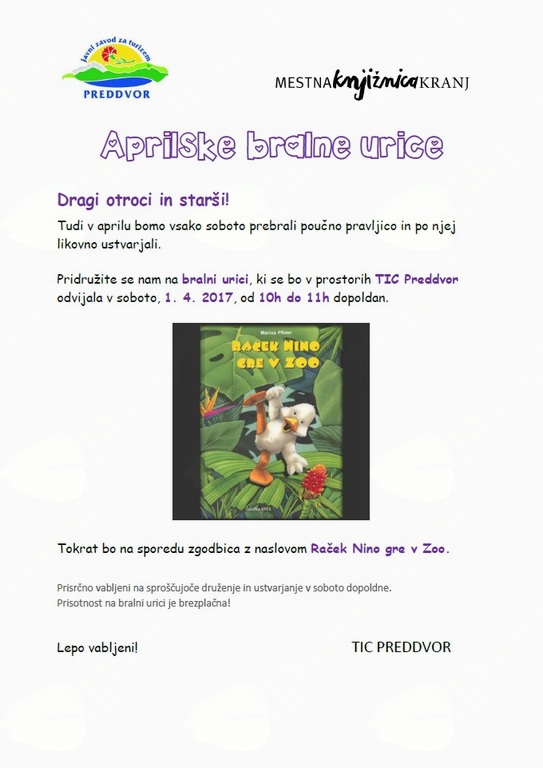 Ne, ni prvoaprilska šala, bralna urica v soboto, 1. aprila bo! Gotovo bo zanimivo, zato ne zamudite