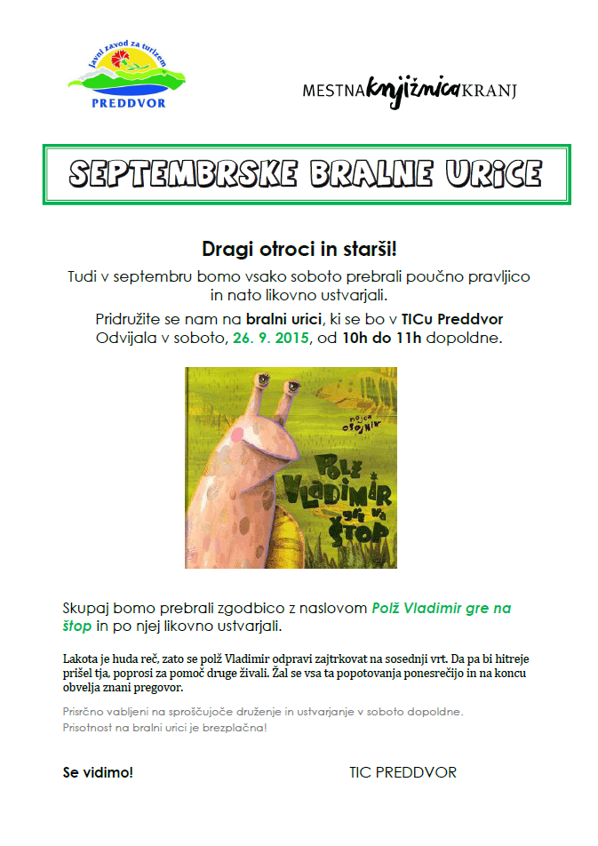 Pridružite se nam na bralni urici, ki se bo v TIC-u Preddvor