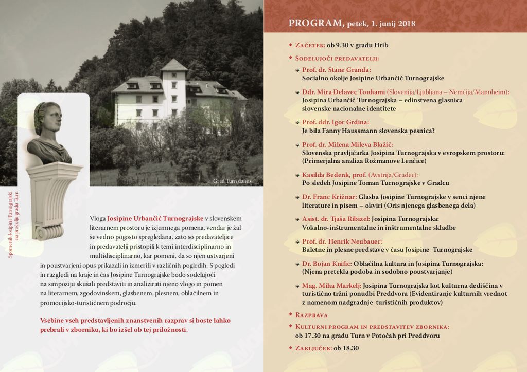 • ddr. Mira Delavec Touhami: Josipina Urbančič Turnograjska - edinstvena glasnica slovenske nacionalne identitete,