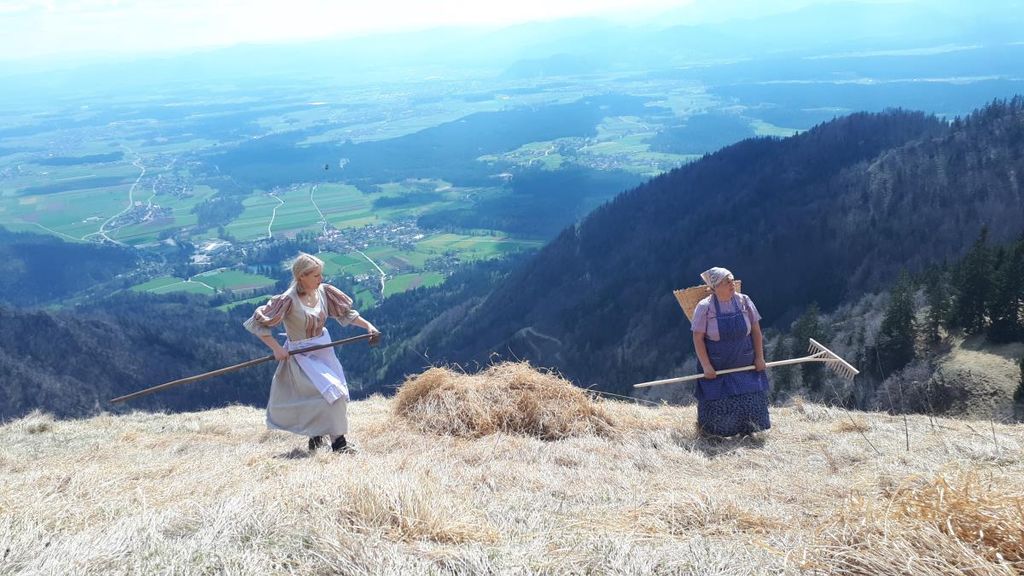 Minuli konec tedna smo posneli prve igrane prizore. Jera in Lojzka sta občudovali, kako globok je G'ru in po pobočjih grabili starico za modroce, Nežka pa je stricu Vorancu zaupala skrivnosti svojega srca. Možakarji so izkusili golcarijo, kakršne se spominjajo le še najstarejši lastniki gozdov. Janez Šenk, Strnišev iz Nove vasi nam je – kot že že marsikdaj - povedal in pokazal, kako se je delalo včasih. Tokrat je že v dolini pomagal pri pripravi orodja, v gozdu pa je, kot bi se povrnil v mlade dni, poprijel za amerikanko.