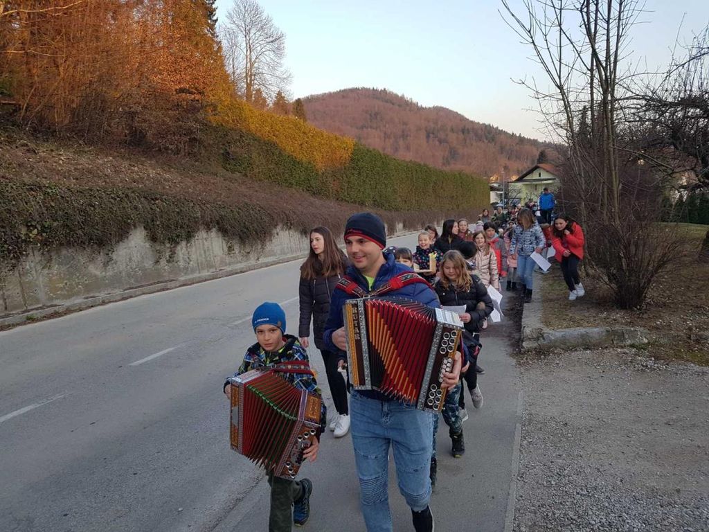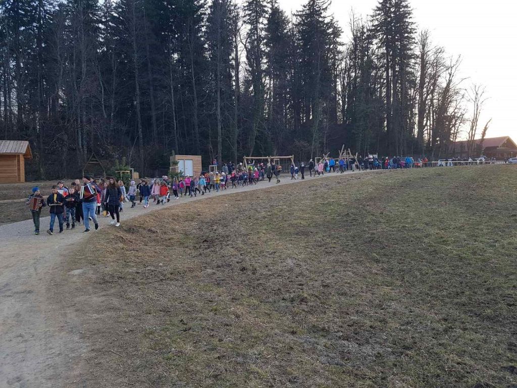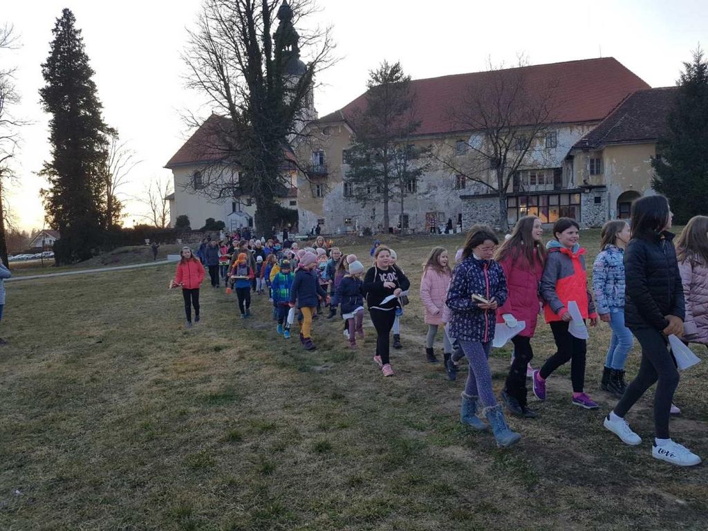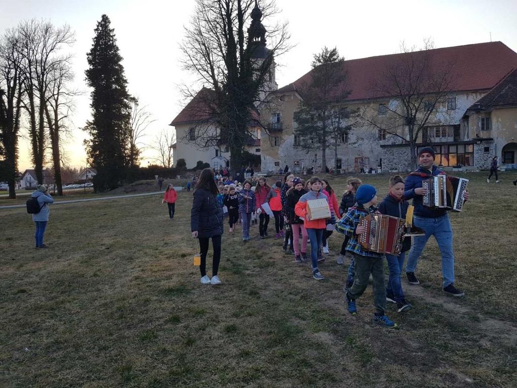 Ob 17.30 so se zbrali otroci pri gradu Dvor in v dolgem sprevodu skupaj prepevajoče odšli k preddvorskemu jezeru Črnava. Na čelu sprevoda sta za dobro voljo skrbela harmonikarja Miran Murnik in četrtošolec Aljaž.