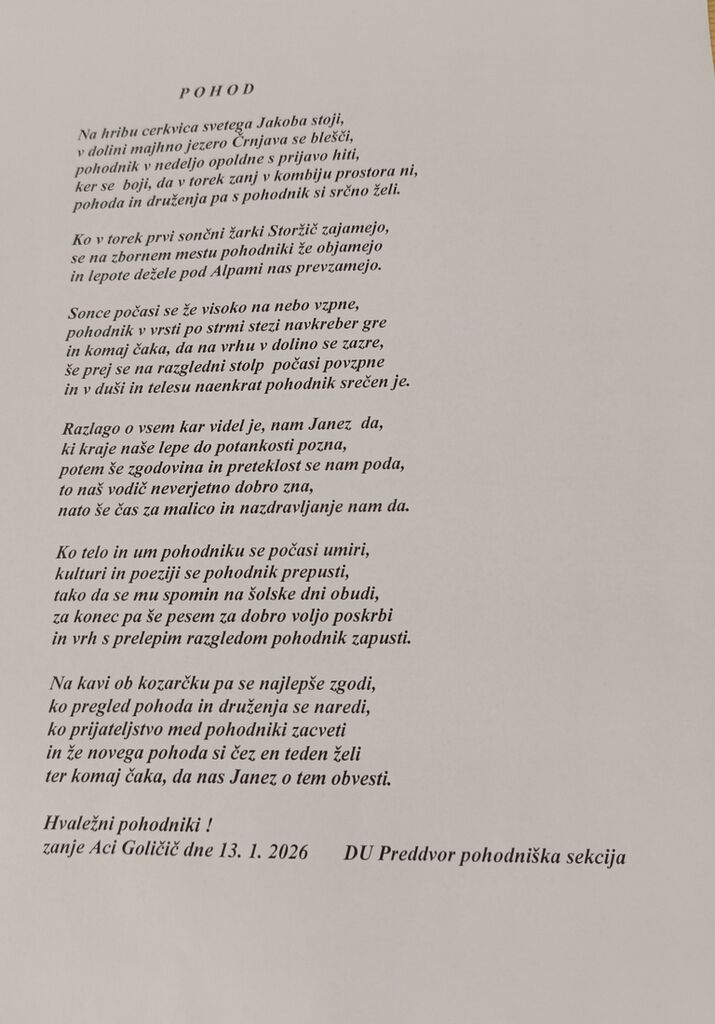 V torek, 13. 1. 2026, smo imeli skupni ponovoletni pohod nekdanjih in sedanjih pohodnikov upokojencev.