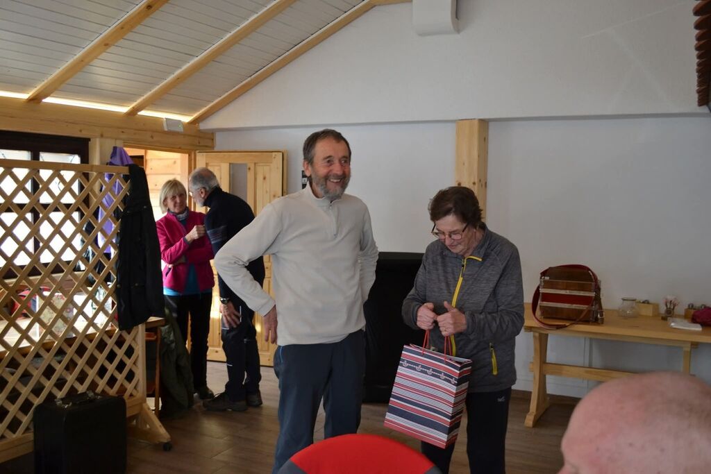 Po dobri hrani je sledil zanimiv kulturni program z obilo smeha in dobre volje. Janez Planinc je podal pregled bogate lanske letine pohodov z ogledom številnih kulturnih, zgodovinskih in seveda naravnih znamenitosti od gorskih rož, vodnih izvirov do vršacev, od močnega Martina Krpana do najdaljšega jambora na Rakitni. Pripravil je tudi kviz »o našem spominu« na pohode. Za zabavo je poskrbel Marko Govekar s skečem in kvizom za Janeza, ki ga je prav tako uspešno prestal. Marjana Podpeskar in Mimi Jelovčan sta obdarili šoferje, poročevalce in seveda Janeza Planinca z darili in željo po še naprej varnih vožnjah in novih pohodih. Aci Goličič je poskrbel za »zahvalno pesem«, ki jo v nadaljevanju lahko preberete med slikovnim gradivom, Zvone Grobovšek s harmoniko za plesne korake in tudi tombola Marka Govekarja ni manjkala. Zadnja točka je bila razdelitev koledarjev s fotografijami naših pohodov iz leta 2025, za kar je oblikovno poskrbel Marko Govekar.