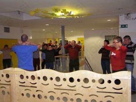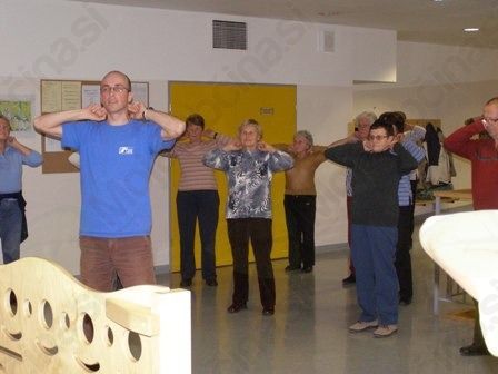 Med odmorom je za udeležence delavnice potekala telesna vadba, ki jo je vodil Miha Vizjak.