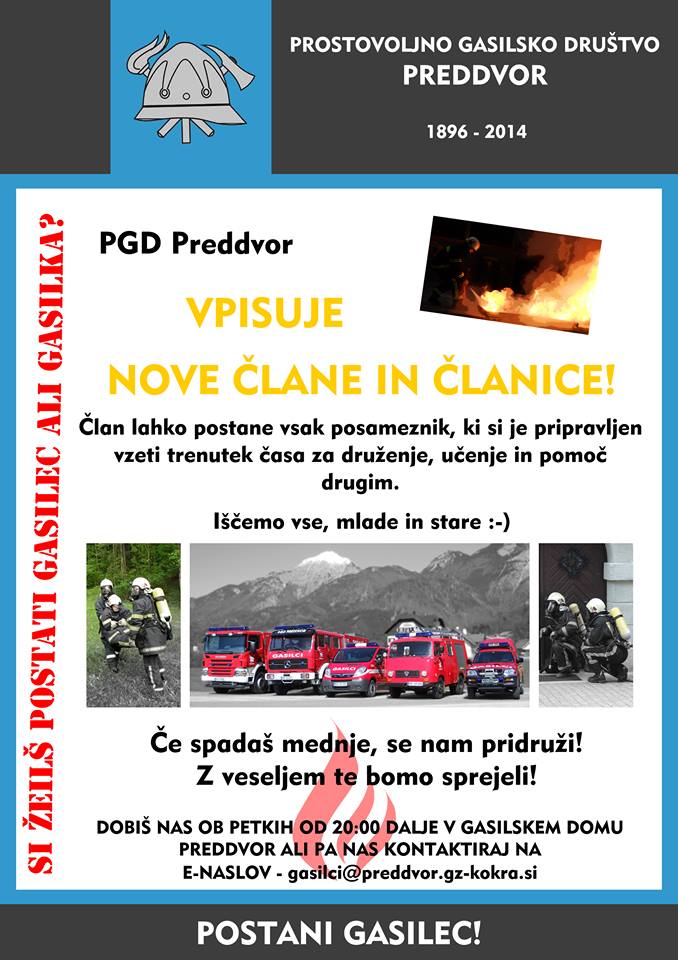 Prostovoljno gasilsko društvo Preddvor vabi k vpisu novih članov.