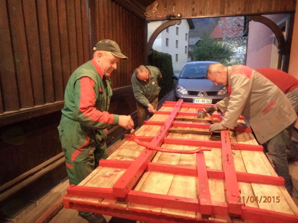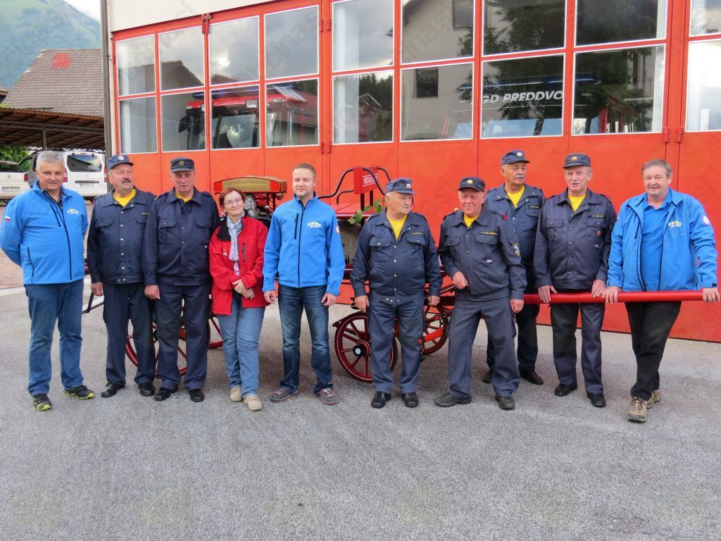 »Pred 86 leti in osmimi meseci je voz stal ravno tu, kamor smo ga pripeljali danes na ogled. Po žegnanju je bil shranjen v starem gasilnem domu, leta 1940, ko je še vedno služil svojemu namenu, pa smo ga preselili v nov dom. Leta 1970, ko smo kupili nov IMV kombi, se je upravni odbor odločil, da ta voz odpelje na odpad. Blagajnik ga je res odpeljal iz doma, a k sreči shranil na šupi, kjer je miroval 45 let. Pred dvema letoma pa se je s pomočjo naše okrožnice, da iščemo staro gasilsko opremo, voz ponovno znašel na našem dvorišču. Zdaj smo ga obnovili in tako veterani skrbimo za to našo staro dediščino, kar jo še imamo,« je zgodovino obnovljenega prevoznega sredstva opisal veteran Andrej Sodnik.
