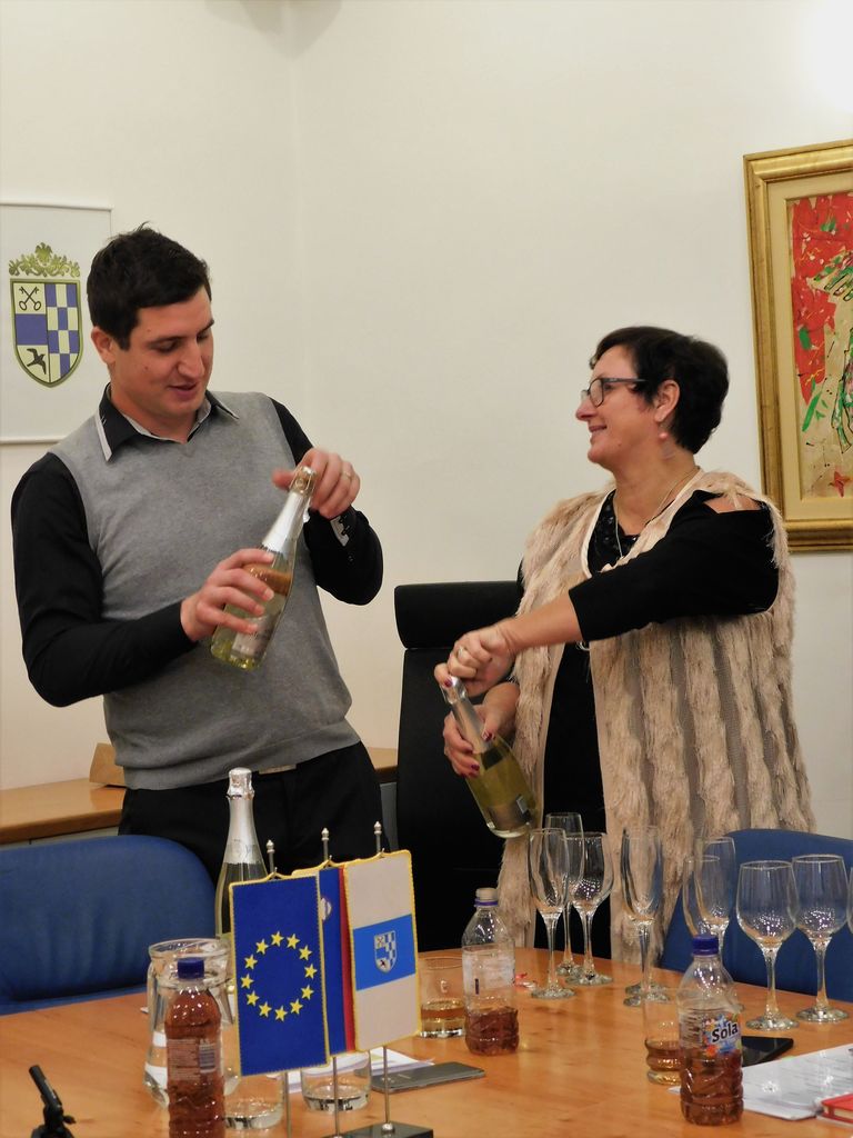 Župan Rok Roblek je prvič nagovoril občinski svet ter izrazil željo po konstruktivnem sodelovanju: »Želim, da se ne delimo na »naše in vaše«, ampak uspešno prekrmarimo mandat ter naredimo nekaj dobrih, pomembnih premikov v občini.« Bivši župan Miran Zadnikar, po novem pa občinski svetnik, je svojemu nasledniku zaželel uspešno delo ter mu izročil ključe pisarne, nato pa so zbrani ob slovesnem novem začetku še nazdravili.