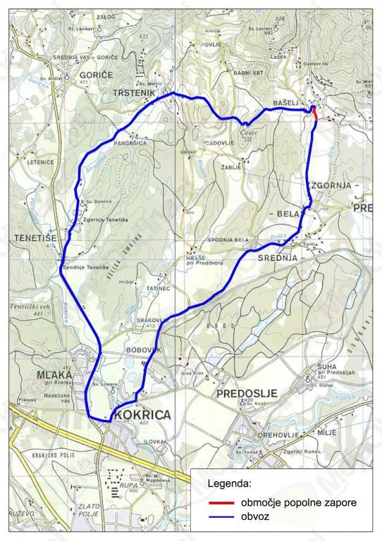 Obveščamo vas, da je v petek, 23.1.2015 zaradi nadaljevanja gradnje magistralnega vodovoda predvidena vzpostavitev popolne zapore v Bašlju, med odcepom za Mače in priključkom k vodovodnemu zajetju.