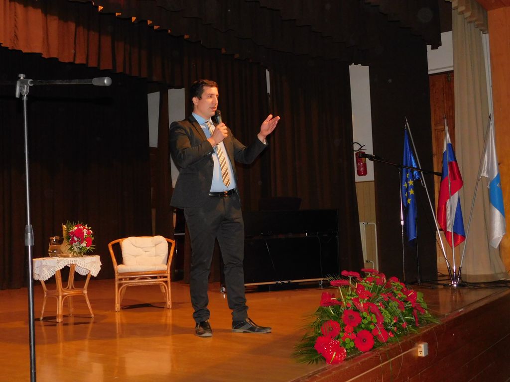 Preddvor, 31.maja 2019 – Na predvečer občinskega praznika, 1. junija je bila v Domu krajanov v Preddvoru Slavnostna akademija s podelitvijo priznanj Občine Preddvor. Zbrane je najprej nagovoril župan Rok Roblek. »Če je vsak od nas kapljica dežja, smo skupaj lahko nevihta in lahko naredimo velike spremembe,« je župan z vremensko prispodobo izrazil pomen dela in pristnih odnosov v prizadevanjih za dobro kraja in soljudi. Osrednji govornik, 95 letni preddvorski rojak pater Polikarp Brolih, ki letos obhaja 70. obletnico mašniškega posvečenja, pa je spregovoril o vrednotah, ki v današnjem svetu upadajo. »Bistvo je biti dober v žlahtnem pomenu besede, biti pristno dober, tudi ko je težko in je treba sprejeti žrtve. V tem življenju se za to človek odloči sam, vsak dan znova,« je poudaril.