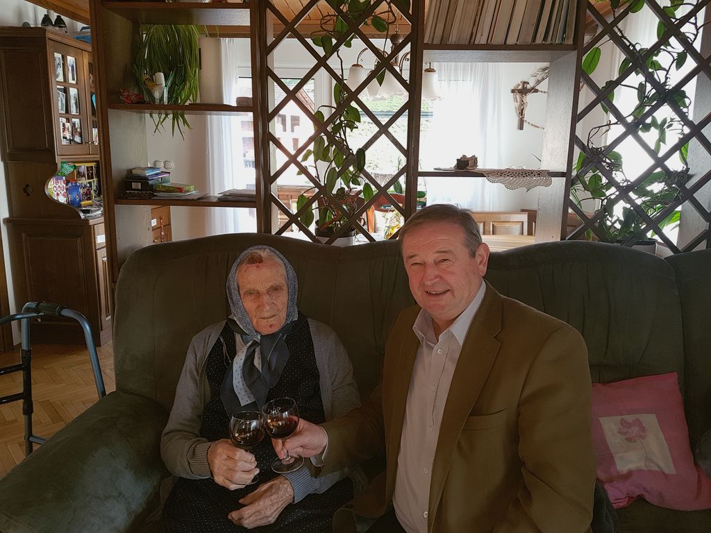 »Župnika in župana sem vedno vesela,« pravi Frančiška Zorman, kateri starost lepšajo pravnuki in domača oskrba, saj živi doma, na Krčevi domačiji v Bašlju, s hčerjo Francko, ki skrbi zanjo, ter z vnukom in njegovo družino. »Ob županovem obisku smo se imeli prav fletno. Malo smo pojedli, poklepetali in nazdravili z vinčkom, mama je bila prav dobre volje« je povedala Andreja Markič.