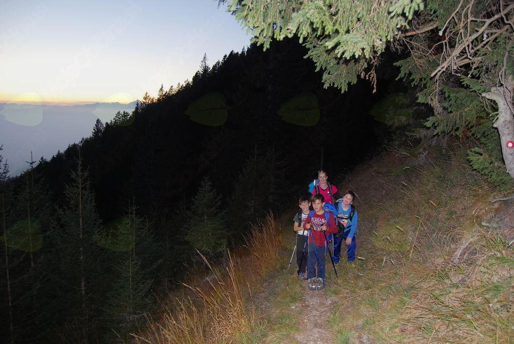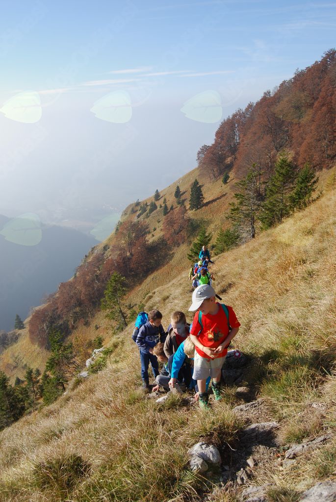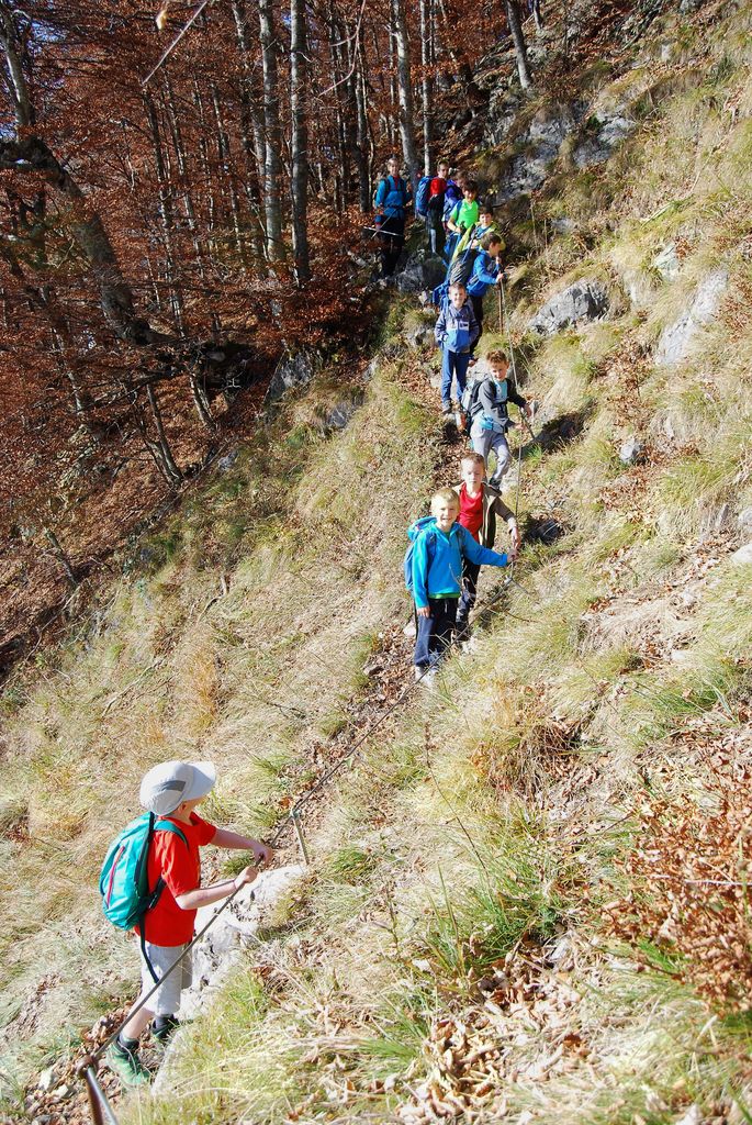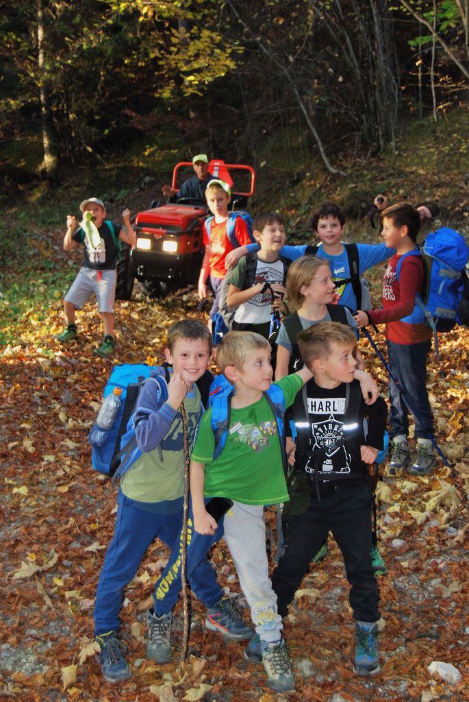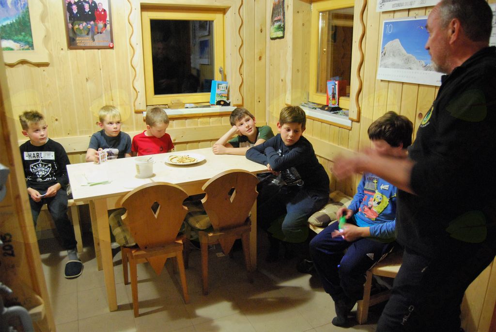 Deset navdušenih mladih planincev z dvema spremljevalkama se je v petek, 20. oktobra 2017, ob 16h zbralo na parkirišču v Mačah. Otovorjeni smo bili s precej velikimi nahrbtniki, zato je traktorski prevoz prtljage za katerega je prostovoljno poskrbel ata Francelj, precej olajšal prvi del poti. Ker spodnja mačenska pot zaradi spravila lesa ni bila povsem varna za našo ekipo, smo šli po zgornji, mimo kališke žičnice. Malo nad njo smo si oprtali nahrbtnike ter nadaljevali mimo »Dinozavrove skale« in »Medvedove luknje« na Kozjek. Poznopopoldanski žarki so žarili pobočja Zaplate, kako lep je bil pogled! Bili smo že skoraj na višini Hudičevega boršta, zato smo dobre volje nadaljevali s hojo. Sonce je že lezlo za Julijce, ko smo po potki korakali proti Borštku, kjer nas je dobre volje pričakal oskrbnik Rajko. Še preden smo uspeli do konca posrkati čaj, se je stemnilo in že smo občudovali lučke v dolini, malo kasneje pa tudi na nebu. Namestili smo se v sobah, si uredili ležišča, se okrepčali z juhico, Tisa Gaja in Martin pa sta se vneto lotila priprave palačink. Kar 50 sta jih napekla in kot običajno smo jih zelo pridno mazali… Po večerji nam je Rajko pripravil »minutke za varno pot v hribe«. Učili smo se o opremi, pripravi na turo in varnosti na poti, vsak pa je z veseljem povedal še kakšno svojo izkušnjo. Šele malo po 22-ti je igrivo klepetanje in hihitanje v Zavetišču zamenjala spokojna tišina.