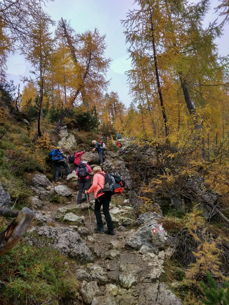 Z lahke, dobro označene, poti po planinah in med zlato obarvanimi macesni, smo se navdušeno ozirali po bližnjih vrhovih Julijskih Alp. Vidni, četudi občasno zakriti z oblaki, so bili Mala, Velika in Zadnja Mojstrovka, Šitna glava, Prednje Robičje in v daljavi, nam nedostopni, Jalovec. Z vrha smo gledali skakalnice v Planici, kočo v Tamarju in daleč čez mejo tudi z jasnino in soncem obsijani avstrijski Dobrač. Kotanje, ki so poleti običajno napolnjene z vodo in izgledajo kot mala jezerca, so bila to pot že suha.