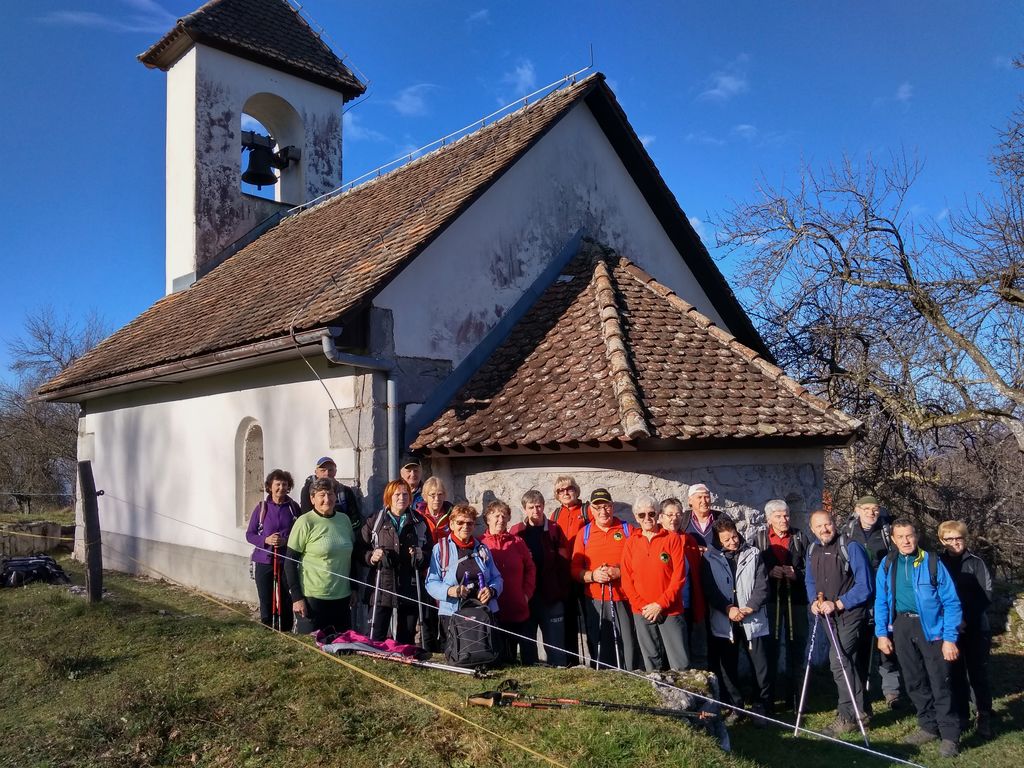 V torek, 4. decembra, so se preddvorski planinci v organizaciji Društva upokojencev in pod skrbnim vodstvom Janeza Planinca, odpravili v hribe na robu Ljubljanskega barja. Vreme je bilo sončno, popolnoma jasno in nenavadno toplo za začetek decembra. Do našega izhodišča v vasi Jezero smo se peljali skozi Brezovico in Podpeč. Vasica Jezero leži ob manjšem kraškem presihajočem Podpeškem ali Krimskem jezeru, po domače Jezeru, ki je raziskano do globine 51m in baje nikoli ne zamrzne. Vanj se stekajo vode površinskih kraških izvirov. V poletnem času se temperatura vode na gladini segreje do 25 stopinj in je primerna za kopanje – na lastno odgovornost, piše na informativni tabli ob jezeru.