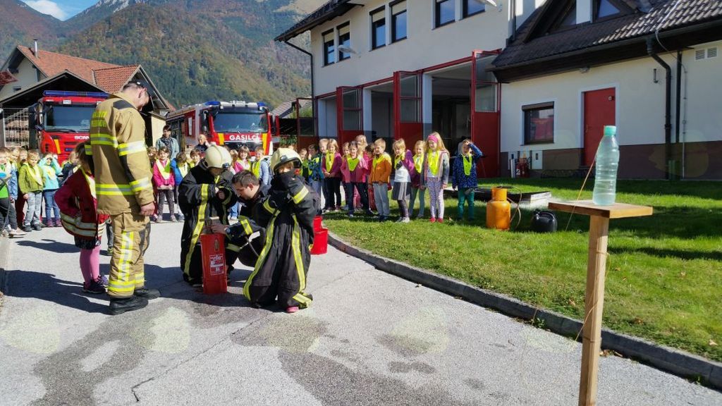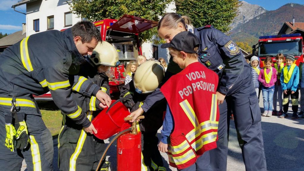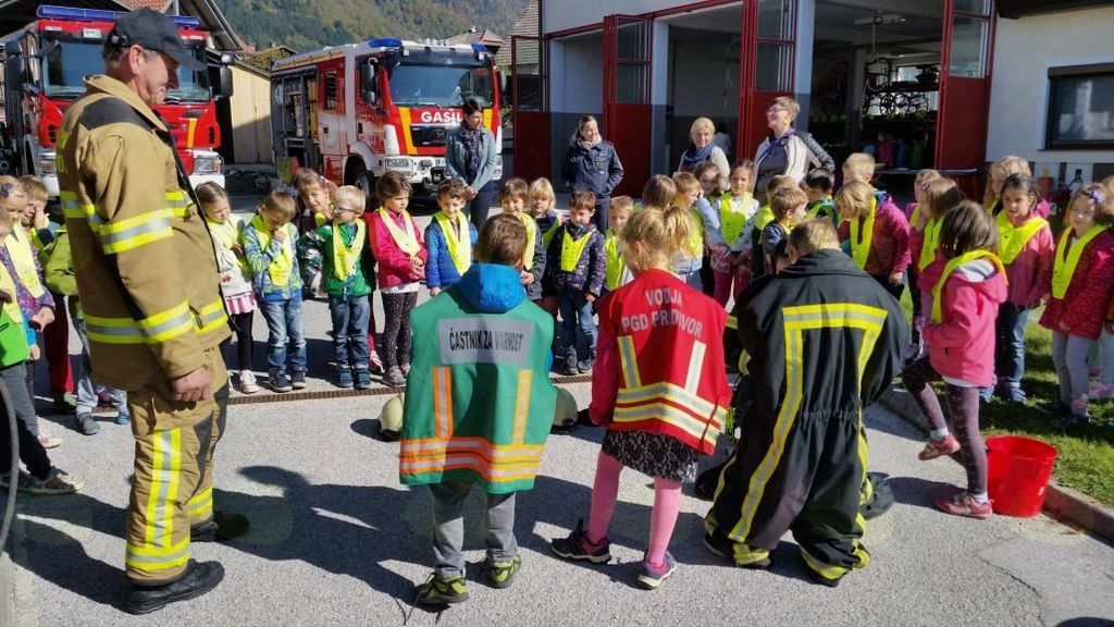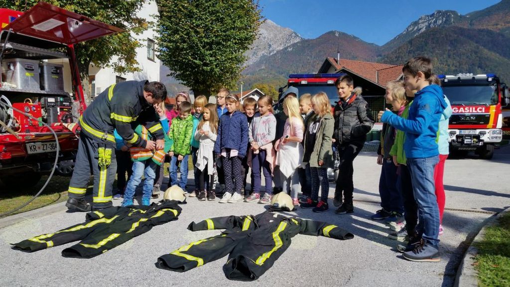 V okviru meseca požarne varnosti so učenci od 1. do 3. razreda preddvorske šole, katerim so se pridružili šolarji iz Kokre, tudi letos obiskali gasilce domačega prostovoljnega gasilskega društva. Čeprav je s strani prostovoljnih gasilcev za sodelovanje s šolo na delovni dan v dopoldanskem času potrebnega obilo prilagajanja in koordinacije, so se kot že velikokrat odzvali naši prošnji in nas prijazno sprejeli. Animacija z lutko, pravljica o Ježku Snežku in požaru, predstavitev postopka oživljanja v primeru zastoja srca, podrobna predstavitev gasilskih vozil in raznovrstne opreme, »sprehod« skozi vozilo, potem pa še pomerjanje gasilske zaščitne obleke in ciljanje »tarče« z vodo ter prikaz gašenja z gasilnim aparatom. Ob tako raznolikih dejavnostih je navdušenim otrokom čas kar prehitro minil. Potrebno se je bilo vrniti v šolske klopi, čeprav bi najraje kar ostali in prav vsi pomerili curek vode proti plastenki na stojalu. Za »špricanje« in ostale gasilske veščine, ki bi jih radi preizkusili, bo dovolj časa na dnevu odprtih vrat, ki bo v soboto, 21. oktobra, so odhajajočim šolarjem obljubili gasilci.