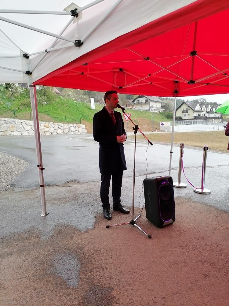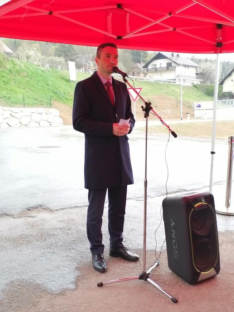 Slavnostni govornik gospod minister za obrambo Matej Tonin, je zbrane nagovoril, da dež za Preddvor prinaša dobre stvari. Povedal je, da je čutiti v občini Preddvor kako ljudje držijo skupaj in si medsebojno pomagajo. Veseli ga pridobitev nove investicije. V nadaljevanju pove, da je država za sanacijo in vzdrževanje državne ceste prispevala 1.400.000 eur občina pa 850.000 eur. Na tem mestu je poudaril kako pomembno je, da sta država in občina medsebojni povezani. Otvoritev je potekala na delu uvoza v poslovno cono, kjer občane čaka lepa prihodnost razvoja občine, za kar nam gospod minister iskreno čestita. Ob koncu nagovora zbrane razveseli še z lepo novico, da se bo obvoznica Hotemaže - Britof pričela graditi jeseni. Pove, da so odkupljena vsa zemljišča, da je gradbeno dovoljenje pridobljeno in da je trenutno v fazi izbire izvajalca del.
