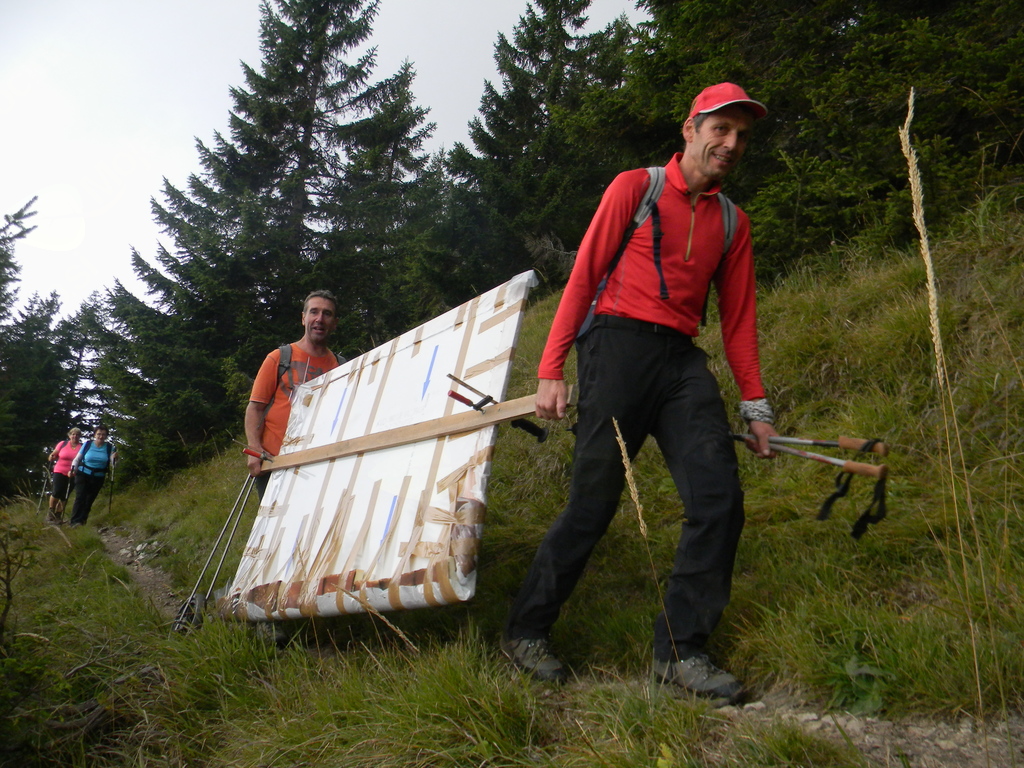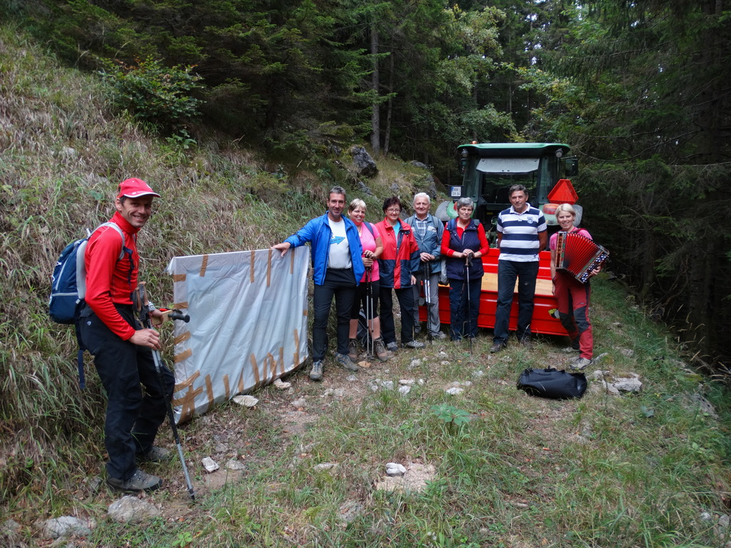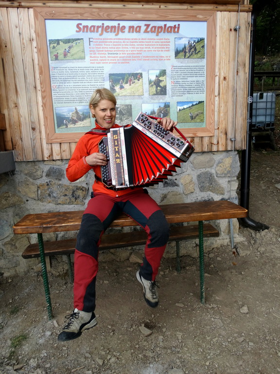 V soboto, 1. oktobra 2016, smo člani Kulturno umetniškega društva Matije Valjavca Preddvor prinesli do planinskega zavetišča v Hudičevem borštu informacijsko tablo, ki v sliki in besedi predstavlja snarjenje na Zaplati. S traktorskim prevozom strmo navkreber v goro je svojo pomoč in dobrodušnost izkazal odličen traktorist Janez Aleš, Remčev iz Mač. Pot do zavetišča je bila tako vsaj za polovico krajša. Božo Rehberger iz Preddvora in Franci Zaplotnik iz Tupalič, oba odlična gorska tekača, sta prevzela odgovorno nalogo nošnjo table. Brez težav sta premagovala pot, tako da smo ostali pohodniki morali pošteno stopiti, da smo ju dohajali. Pri zavetišču sta nas sprejela prizadevni predsednik Planinskega društva Preddvor Aleš Drekonja in prav tako prizadevni oskrbnik Rajko Fende. Z vriskanjem so nas sprejeli preostali člani našega kulturnega društva, ki so prišli iz doline peš. Medtem ko sta oče in sin Jože in Matija Krč iz Nove vasi pritrjevala informacijsko tablo, je Silva Rozman s Spodnje Bele na frajtonarico razveseljevala vse zbrane. To je bilo sploh prvič, da je tu v Hudičevem borštu, odkar se je začela graditi koča, odmeval glas harmonike.