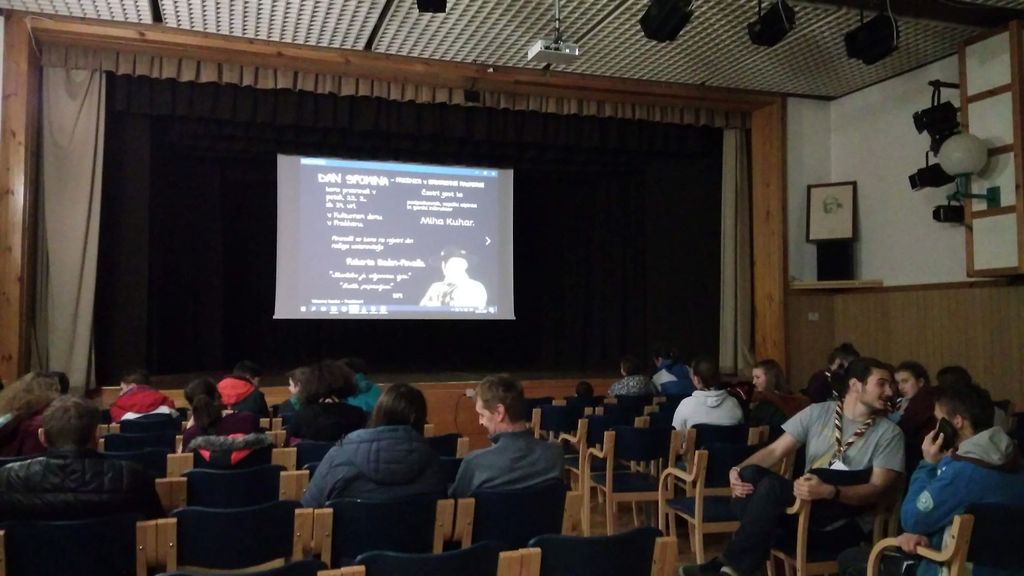 Ob 19. uri smo se v Kulturnem domu v Preddvoru zbrali Preddvorski skavti, starši in mlajši bratci ter sestrice. Ogledali smo si kratek posnetek življenja sir Roberta Baden Powella (BiPija) nato pa je besedo prevzel naš posebni gost: Miha Kuhar.