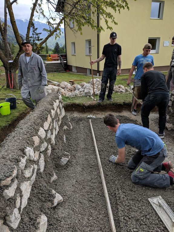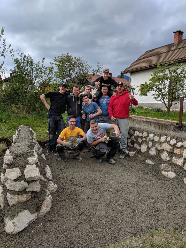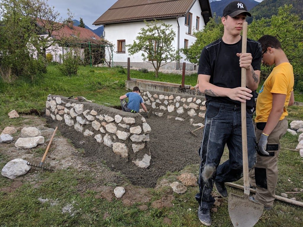 V skoraj več-dnevni delovni akciji, so na vrtu Stanovanjske skupine Črnava iz Preddvora, dijaki drugega letnika Srednje gradbene šole in Gimnazije Maribor ob strokovnem in zelo spodbudnem vodenju učitelja Čukurja postavili dva tri metrska in 60 cm visoka zidova iz naravnega kamna.