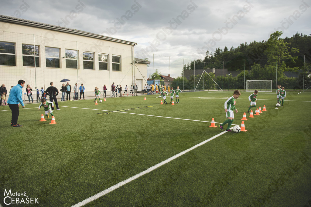Prireditev se je začela v telovadnici, kjer so otroci zbrane pozdravili s petjem in plesom, nato pa se je dogajanje preselilo pred šolo. V spremenljivem vremenu smo lahko prisluhnili govoru, videli svečano rezanje traku in blagoslov igrišč, dež pa so pregnali nadobudni nogometaši in tekači. Slednji so odtekli štafeto, udeleženci nogometnega krožka pod vodstvom trenerjev Športnega društva Preddvor pa uprizorili trening. Sledila je nogometna tekma, ki je oznanila, da se nogomet po 56 letih znova vrača na mesto, kjer je v Preddvoru včasih že bil.