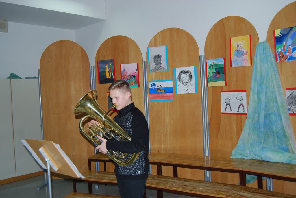 Preddvor, 7. februar 2019 - V Osnovni šoli Matije Valjavca Preddvor so s prireditvijo slovesno obeležili slovenski kulturni praznik. Zbrane sta nagovorila preddvorski župan Rok Roblek in ravnatelj šole Bogdan Sušnik. Slednji je ob tej priložnosti podelil priznanje lanski devetošolki Katji Bogataj, ki je pod mentorstvom učiteljice Milene Tavželj s svojim izdelkom dosegla prvo mesto na Mednarodnem likovnem natečaju na temo Prešernovih pesmi ob 50 letnici OŠ Franceta Prešerna Kranj.