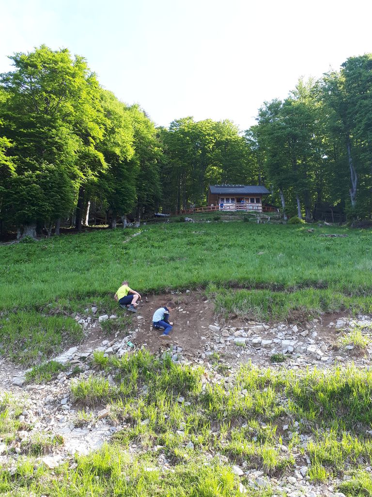 V soboto so nas sončni žarki že zgodaj zvabili na plano, jutranji mir v Hudičevem borštu pa je zamenjal otroški vrvež: večkratni sprehod do studenca, nabiranje smrekovih vršičkov, igre v »peskovniku« ob helidromu, iskanje zanimivih kamnov, pa seveda občudovanje razgleda… Po zajtrku smo bili deležni še praktične učne urice: najprej prikaz postopka risanja in obnavljanja rdeče belih znamenj s strani izkušenega markacista, nato pa je vsak »namalal« svojo markacijo. Ura je šla že proti enajsti, ko smo se poslovili in jo mahnili proti Jakobu – se ve, čez Javorov vrh, najvišjo točko naše ture, in s postankom na razgledni točki. Da nam je vroče, smo začutili šele na Jakobu; nekaj otrok je postanek vseeno izkoristilo za guganje in posedanje v ležalnikih na plaži, za sestop v dolino pa smo raje izbirali senčne steze. Malce utrujeni a zadovoljni po krasni turi in hvaležni, da smo se srečno vrnili v dolino, smo točno ob dogovorjeni uri zaključili našo pustolovščino.