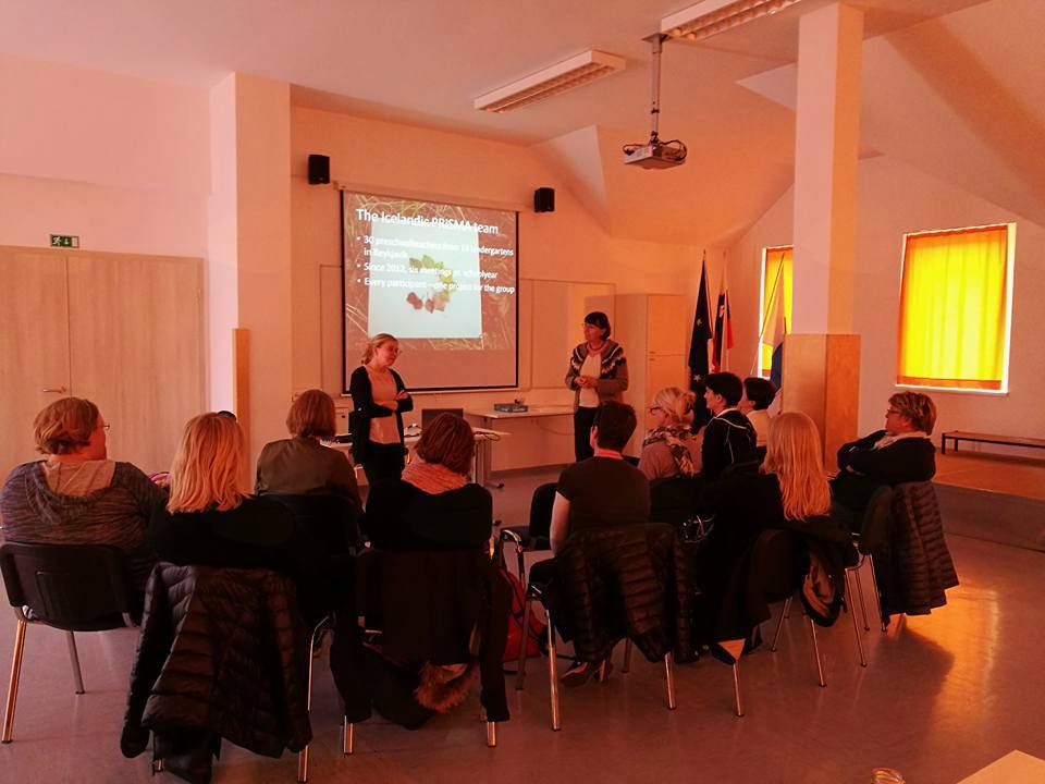 Glavna tema srečanja je pomen učenja otrok v naravi. Skupini islandskih in slovenskih vzgojiteljic iz Kamnika, Kranja in Preddvora ob profesorici dr. Darji Skribe Dimec iz Pedagoške fakultete v Ljubljani dnevi na Zg. Beli in v Preddvoru hitro minevajo. Urnik udeleženk je pester. Ob hospitacijah v vrtcu, izmenjavi primerov dobre prakse, spoznavanju Gorenjske, refleksiji in evalvaciji našega dela že kujemo načrte za sodelovanje na področju predšolske vzgoje tudi v prihodnje.
