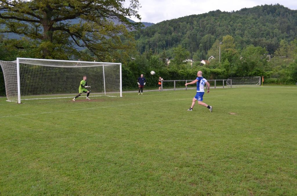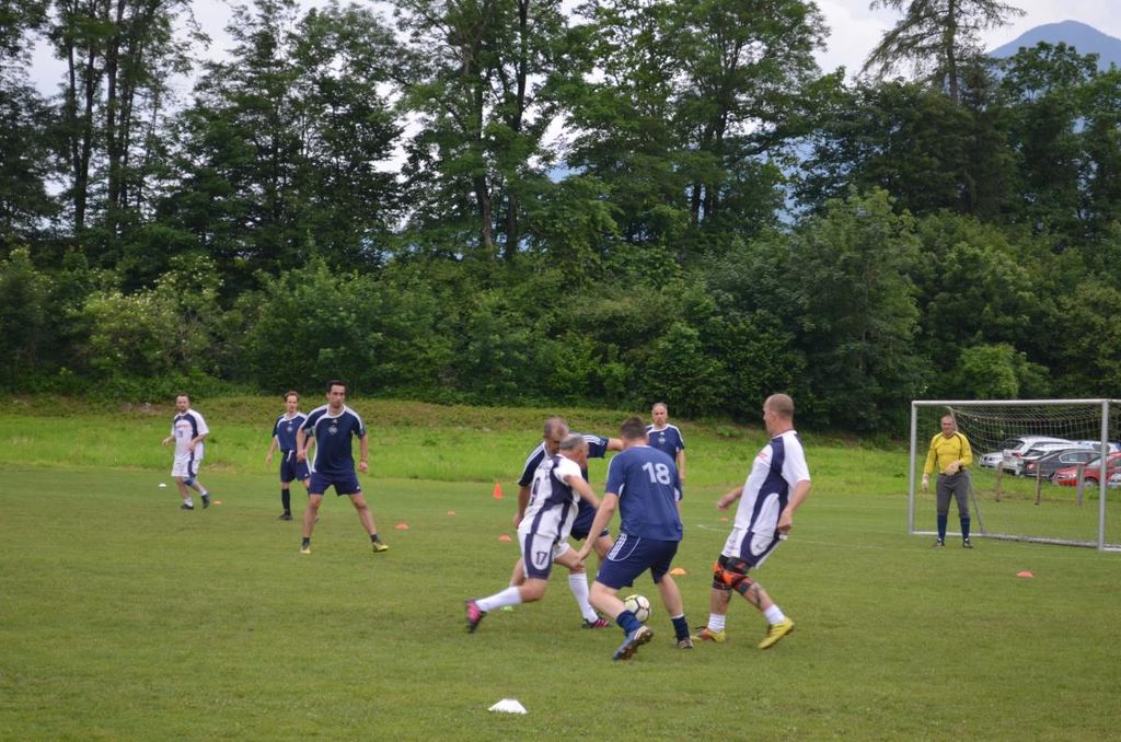 Uvodni del prireditve je že po tradiciji pripadal starejšim igralcem, ki smo jih, razvrščene po datumu rojstva po sistemu prvi-drugi, razdelili v dve ekipi in sicer modro in belo. Letos so bili spet boljši MODRI, ki so dobili prvi polčas z 1:0. Tudi v drugem so imeli boljšo realizacijo in razpoloženega vratarja MODRI, ki so tekmo zaključili z rezultatom 3:1 v svojo korist, čeprav so imeli BELI čez celo srečanje terensko premoč in tudi več priložnosti.