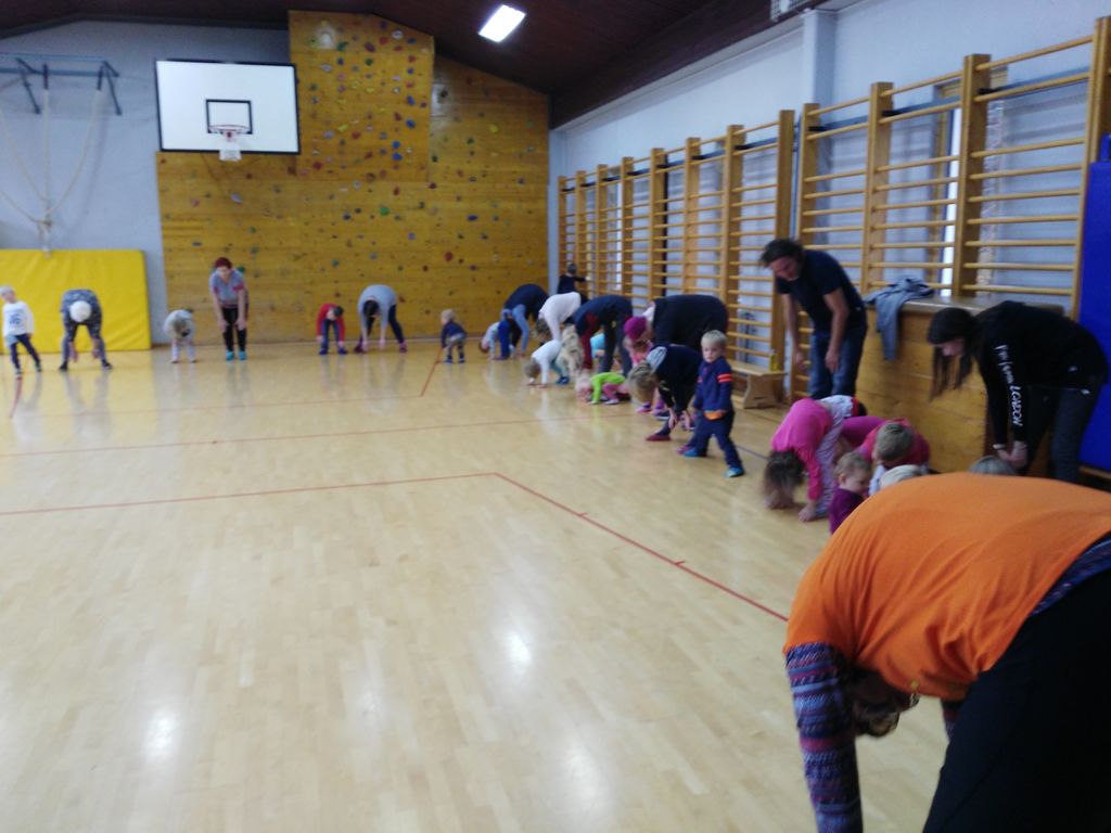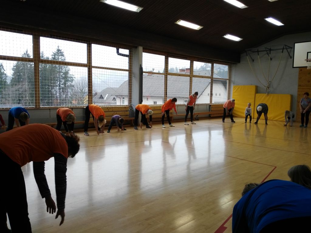 Ker je tudi na Jezerskem še vedno deževalo, smo naše srečanje izvedli v veliki in lepo opremljeni telovadnici podružnične šole Jezersko, ki je del OŠ Matije Valjavca Preddvor. Tako kot mi smo se tudi z najmlajšimi najprej pozdravili in nato pričeli z zabavno igro o vremenskih pojavih. Tudi otroci vedo, da sonce greje, dež pada, toča udarja, sneg rahlo naletava, zato smo namesto običajne jutranje masaže izvedli »vremensko masažo«, saj smo gibalne vaje združili v zabavno igro, v kateri smo uživali tako mladi kot malo starejši. Nato so sledile izbrane vaje, ki smo jih spet z besedno igro spremenili v zabavo, da so jih otroci razumeli in se ob izvajanju zabavali. Ob slovesu smo se domenili, da se zopet srečamo spomladi, ko bo čez jezerske vršace posijalo toplo sonce.