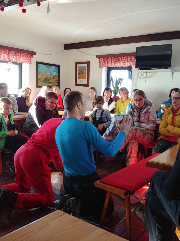 Krajevni odbor Rdeči križ Preddvor je v soboto, 14. decembra 2019, dopoldne v koči Planinskega društva Preddvor pripravilo predstavitev in praktično usposabljanje z zunanjim avtomatskim defibrilatorjem (AED) ter meritve krvnega tlaka, sladkorja in celokupnega holesterola. »Po večernem deževju je v soboto zjutraj na polovici poti na Jakoba sneg že pobralo, na vrhu pa je bilo čudovito zimsko vzdušje. Lepo vreme je bilo, krasni razgledi in verjetno tudi zato dober obisk našega dogodka. Predstavitev AED je bila zanimiva in poučna, meritve pa zelo uspešne in številne. Zadnji skupini so se pridružili tudi gimnazijski pohodniki v programu MEPI,« je povedala predsednica preddvorskega Rdečega križa Milena Zupin. Usposabljanje in meritve so poleg prirediteljev izvajali usposobljeni prostovoljci Območnega združenja Rdečega križa Kranj.