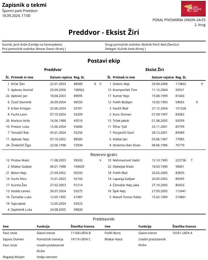 Uvrstitev Preddvora med 32 najboljših slovenskih članskih ekip je nedvomno zgodovinski uspeh, za katerega so zaslužni tako strokovno vodstvo kot vsi igralci ter tudi vsi podporniki, ki tako ali drugače izražajo naklonjenost naši perspektivni članki ekipi. Vsi skupaj pa že z nestrpnostjo pričakujemo žreb za 3. krog, ki bo v ponedeljek, 30.9.2024 na sedežu NZS.