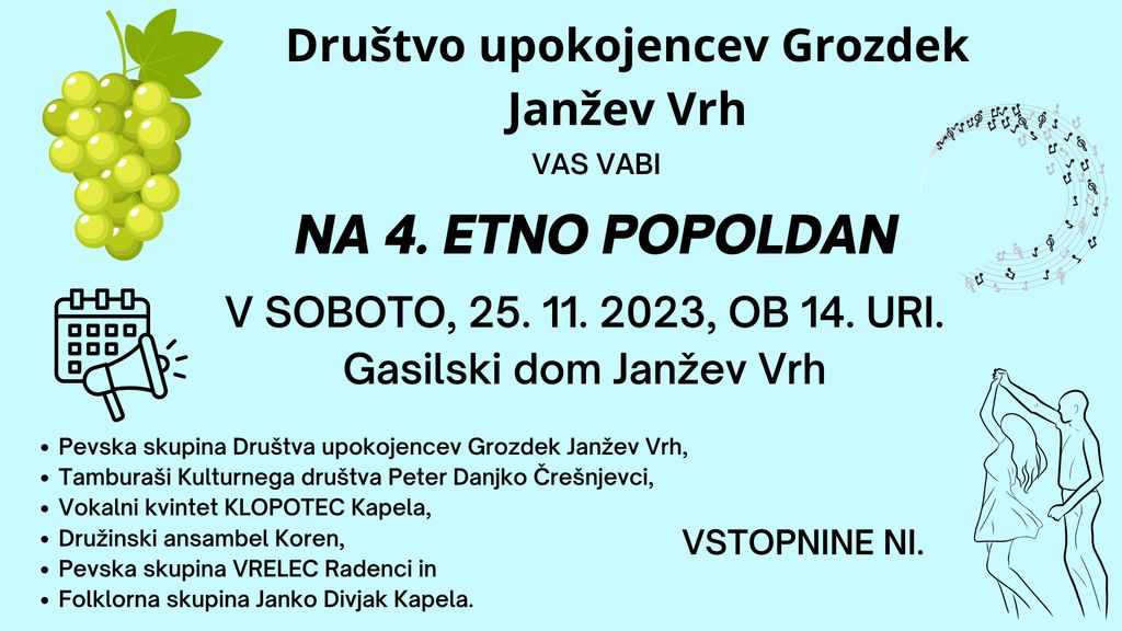 Organizator: Društvo upokojencev Grozdek Janžev Vrh