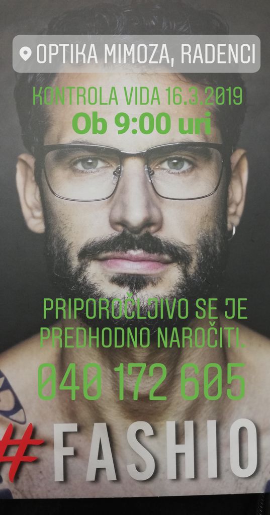 Kontrola vida bo 16.3.5019 ob 9:00 uri. Priporočljivo se je predhodno naročiti.