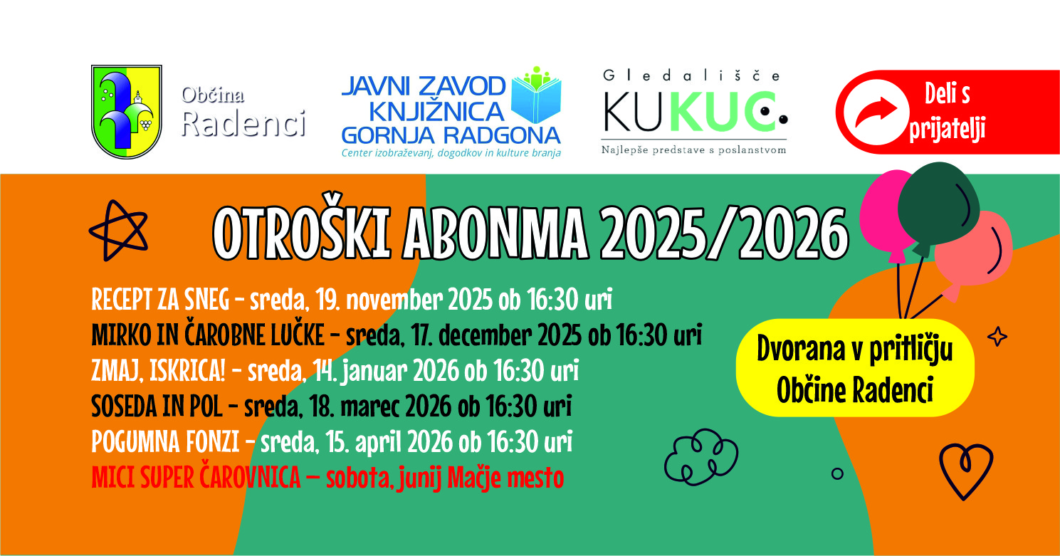 Občina Radenci organizira gledališko/ lutkovni abonma za otroke v starosti od 2-9 let.