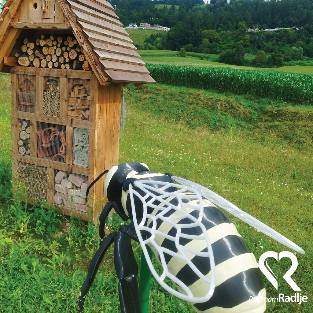 V Radljah je na mavričnem travniku postavljen hotel za žuželke skupaj s 3D čebelico.